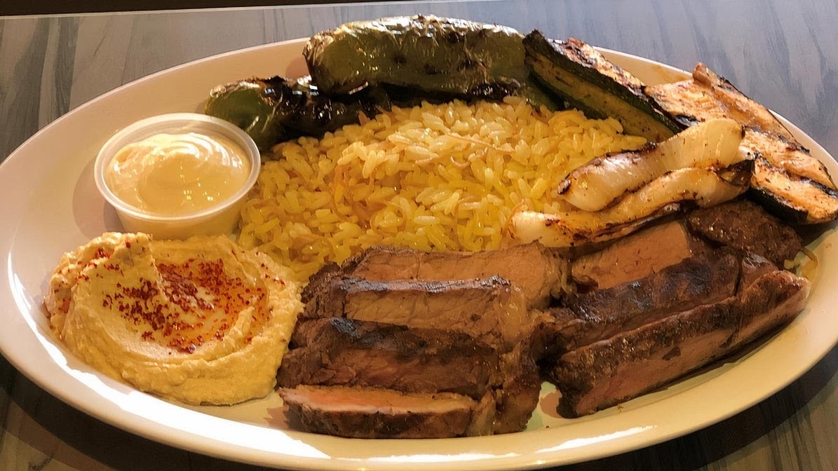 Just outside the Fresno convention center, came here for lunch on a Saturday. Huge place, decent size servings, good value, basic furniture. Service is on the slow side, despite the place being almost empty for lunch. But then its Saturday, and downtown Fresno deserted on weekends. Ordered the $12 chicken lula kabob plate, which came with two kabobs, and sides of salad, and hummus spread for pita chips. Chicken juicy and fresh, flavorful with the mixed rice. Wife ordered the $9 egg boat with two over easy eggs and cheese inside a freshly baked dough covered with mushrooms. Delicious and filling. The prices on the menu came with tape over the old prices on the wall, as if the prices change annually. Open Mon-Sat 10am-3pm , as office workers get out of Dodge at 5pm -it's that sketchy an area.