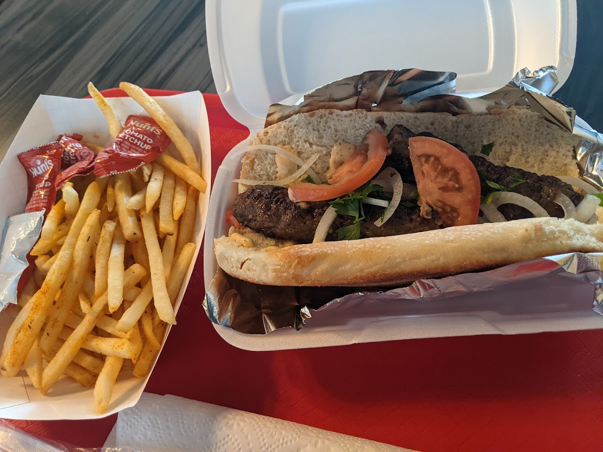 I love GG's. They are still family owned and the food is still freshly made. My husband and son obsess over their garlic sauce. We don't often make it over even though we live close by because they close at 3pm weekdays and 2pm on Saturdays, closed on Sundays. I needed to take lunch to my husband so we got lunch to go: 2 beef shawarma wraps, fries, fattoush salad and calzone with pepperoni instead the standard chicken and can't forget a large side of that garlic sauce (we sometimes come in for just the garlic sauce to go with whatever we're having for dinner). Unfortunately, today they forgot my husband's fries so he had to make do with just a wrap. They are good size so he didn't go hungry. I almost didn't go back for the fries after I dropped off his lunch but I'm soooo glad I did because they are really good! Nicely seasoned thin fries, perfectly crispy. Not overly salty, thankfully. My daughter, surprisingly, thought there was too much cheese in her calzone - like, when does that ever happen? Haha never. I asked for my pita chips to my fattoush salad on the side so they wouldn't get soggy and that was brilliant. My salad was huge and the chicken breast pieces so tender and seasoned well.